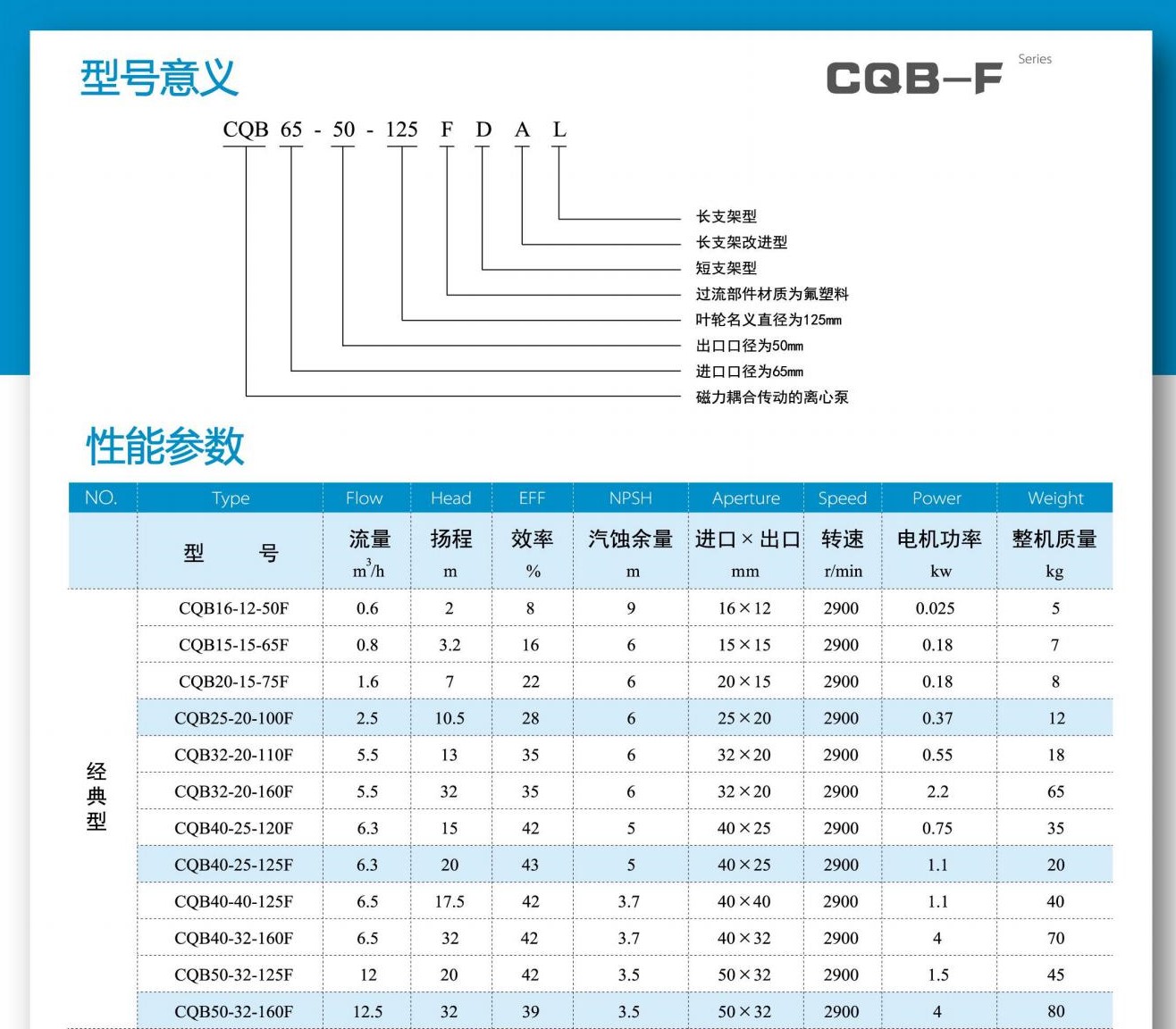 1、CQB-F型全氟塑料磁力泵是指過流部件為氟塑料材質(zhì)的磁力驅(qū)動泵,又稱四氟磁力泵。